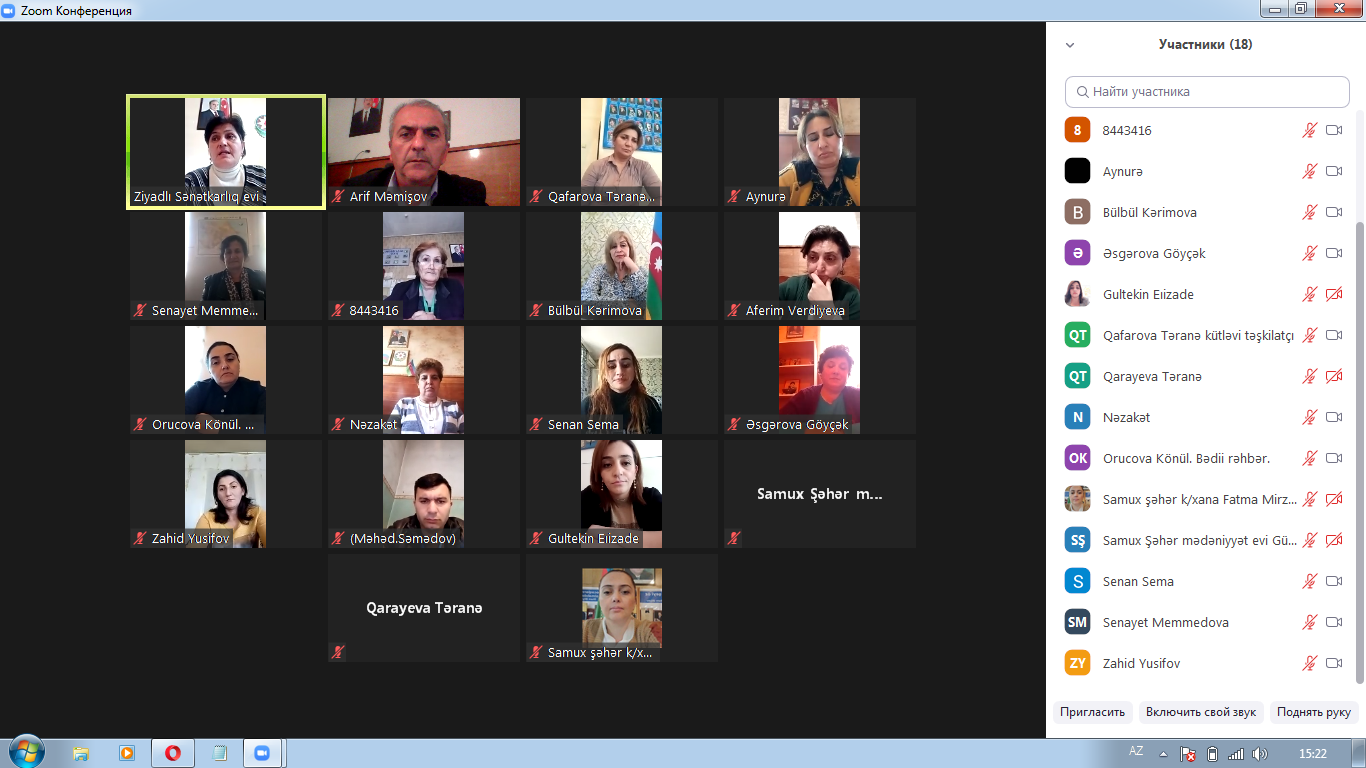 27.10.2021- ci il tarixdə Gəncə Regional Mədəniyyət İdarəsi Samux rayon Mədəniyyət Mərkəzində "Beynəlxalq Siyasi Repressiya Qurbanları günü" ilə bağlı videokonfrans keçirildi.