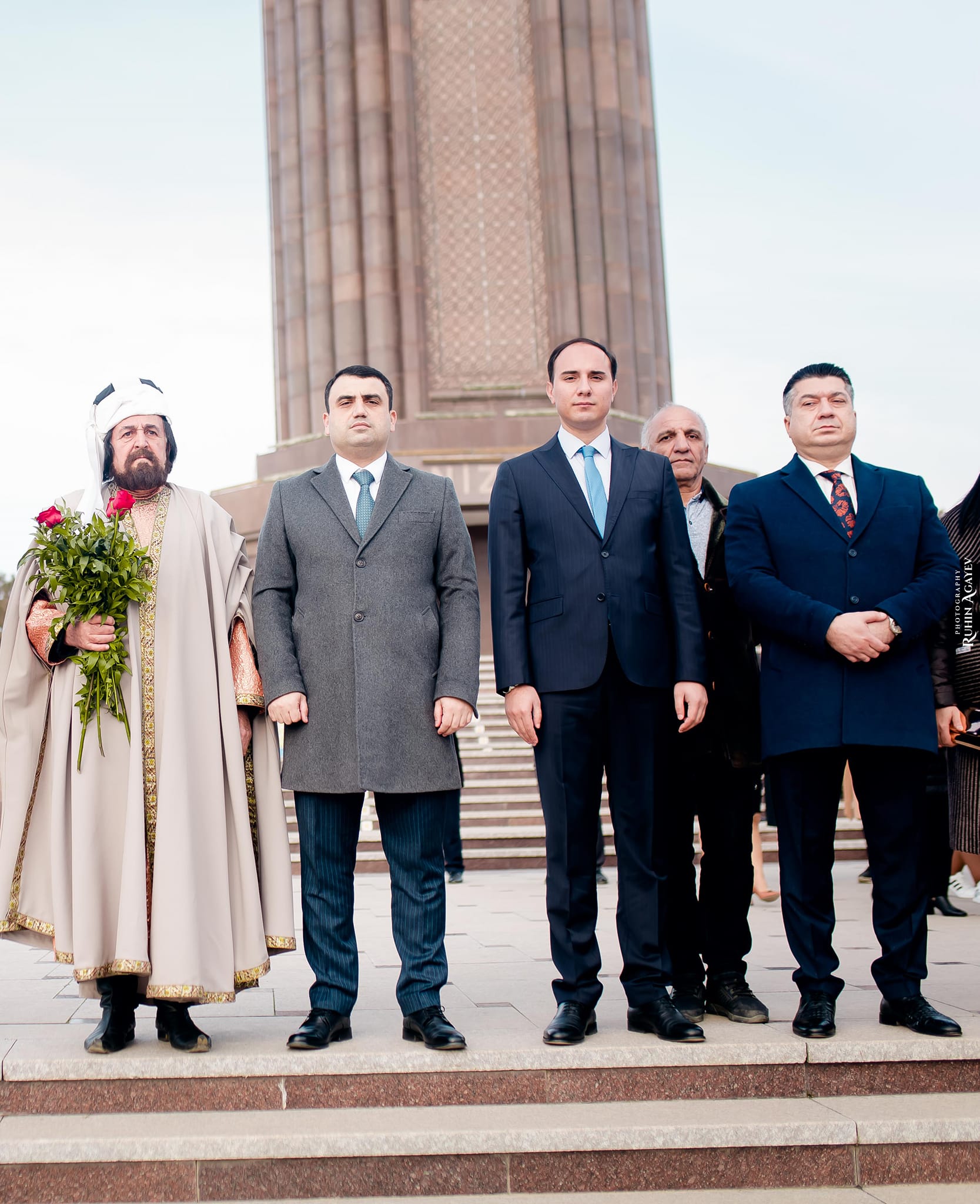 Nizami Gəncəvi Məqbərəsinin önündə Gəncə Dövlət Dram Teatrının aktyoru, Xalq artisti Alim Məmmədov Nizami Gəncəvinin obrazında qonaqları salamladı.