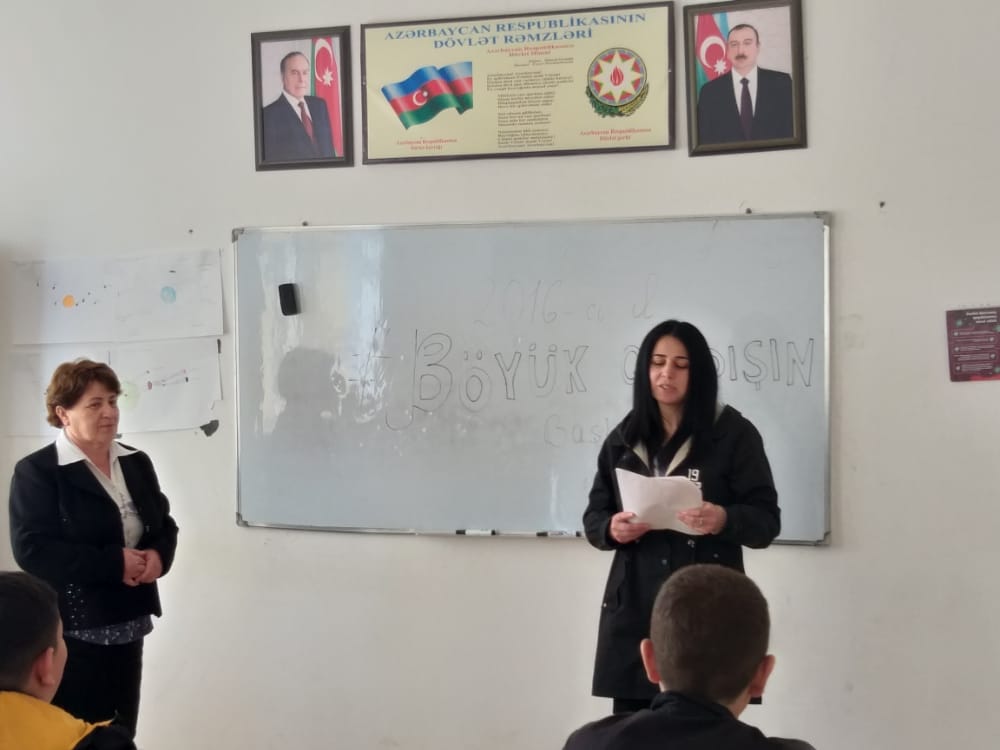Gəncə Regional Mədəniyyət İdarəsinin Samux rayon Mərkəzləşdirilmiş Kitabxana Sisteminin Seyidlər kənd kitabxana filialı və Seyidlər kənd tam orta məktəbi ilə birgə 04.04.2022-ci il tarixində “Şanlı hərbi qələbəmiz” adlı ənənəvi tədbir keçirdi. Tədbirdə şəhidlərimizin əziz xatirəsi bir dəqiqəlik sükutla yad edildi. Sonra Seyidlər kənd kitabxana filialının müdiri Məmmədova Xatirə öz çıxışında qeyd etdi ki,aprelin 4-ü Ermənistan ordusu itirilmiş mövqelərini geri qaytarmaq məqsədilə cəbhənin əsasən Ağdərə-Tərtər və Xocavənd-Füzuli istiqamətlərində mövqelərimizə yenidən hücum etdi, təmas xəttinə yaxın yaşayış məntəqələrimizi intensiv atəşə tutdu. Amma döyüşçülərimizin şücaəti qarşısında düşmən məqsədinə nail ola bilmədi. Onların əlavə qüvvələr göndərməklə hücumu davam etdirmək planı da baş tutmadı.Aprel döyüşləri bütün dünyaya Azərbaycan Ordusunun gücünü, qələbə əzmini, ədalətin bərpa olunacağını göstərdi. Tədbirdə çıxış üçün Seyidlər kənd tam orta məktəbin Ədəbiyyat müəllimi Məmmədova Laləyə söz verildi.2016-cı ilin aprel döyüşlərindən artıq 6 il keçir. Torpaqlarımızın azad olunması yolunda canlarından keçmiş şəhidlərimizin hünəri bu gün də gənclərimizə örnəkdir. Dörd gün davam edən Aprel döyüşləri Azərbaycan tarixində daha bir şərəfli qələbə kimi yaddaşlarda qalıb. Tarix boyu Azərbaycan əsgəri vətəni, bir qarış torpağı uğrunda canından keçməyə hazır olub. Şəhidlik elə bir zirvədir ki, o hər insana nəsib olmur. Onların adları, xatirəsi yaddaşlarda əbədi yaşayacaq. Daha sonra Seyidlər kənd tam orta məktəbin Tarix müəllimi Mehdiyeva Sübhanə qeyd etdi ki,tarixə “Dördgünlük müharibə” adı ilə düşən Aprel döyüşləri gənclərin hərbi vətənpərvərlik ruhunu daha da yüksəltdi. Aprel döyüşlərində qazanılan qələbə xalqımızın orduya olan inamını artırdı. Ermənilər Azərbaycan əsgərinin qarşısında diz çöküb məğlub oldular. Bu gün əli silah tutan hər kəs Vətən uğrunda döyüşməyə hazırdır. Son döyüşlər bir daha göstərdi ki, ordumuzun potensialı böyükdür. Bu uğurlu döyüşlər Silahlı Qüvvələrimizin gələcəkdə qazanacağı qələbələrin yalnız başlanğıc nöqtəsidir. Şəhidlər bizim həm qürur yerimiz, kədərimiz, tariximiz, həm də qalibiyyətimizdir. “Vətən sağ olsun”, - deyib balasını torpağa əmanət edən, övladının tabutunun üzərindəki bayrağı qoxlayıb sanki qoxusunu ondan alan analar, atalar... Biz sizin qarşınızda baş əyirik! Tədbirdə məktəb şagirdləri Aprel döyüşləri şəhidlərinin əziz xatirəsinə şeirlər söylədilər.