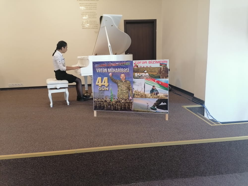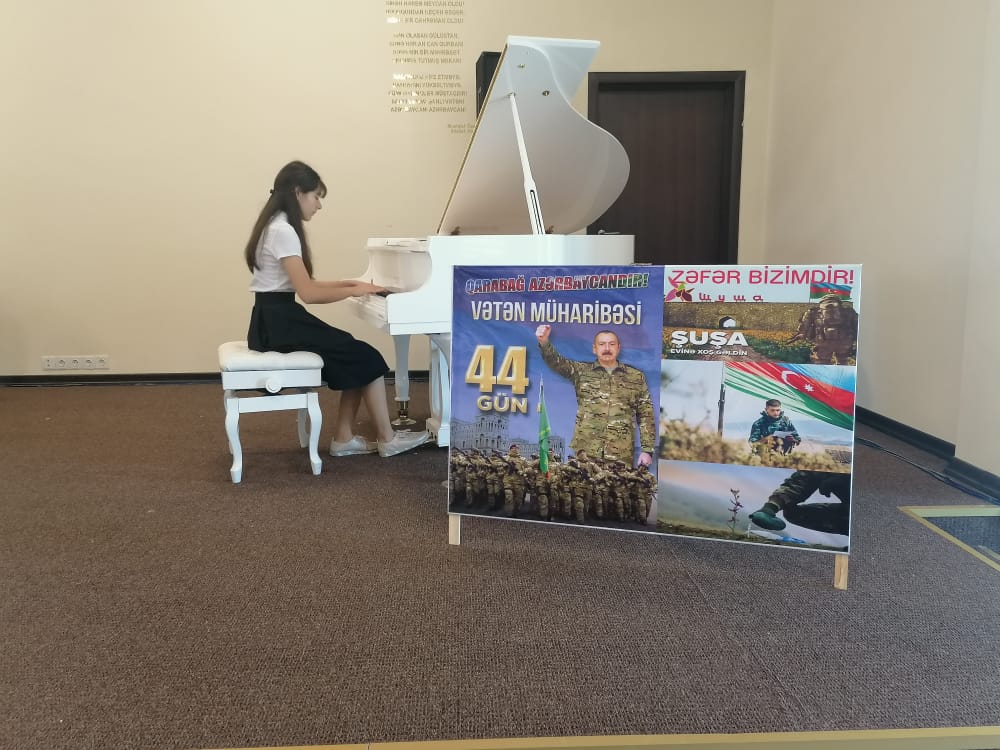 İlk öncə 44 günlük müharibədə şəhid olan igid əsgərlərimizin ruhu 1dəqiqəlik sükutla yad edildi. Sonra fortepiano şöbəsinin müdiri Tağıyeva Aynurə Şuşa haqqında məruzə ilə çıxış etdi. Daha sonra fortepiano şöbəsinin şagirdlərinin ifaları ilə tədbir davam etdi. Tədbirdə Əsgərzadə Nigar və Zeynalova Şahnaz Ü.Hacıbəyli "Arşın mal alan" musiqili komediyasından "Əsgərin mahnısı", Quliyeva Mələk F.Əmirov "Marşyasağı" , İsayeva Məleykə T.Quliyev "Lay-lay" , Tağıyeva Lalə F. Əmirov "Skerso", Bağırzadə Nərmin F.Əmirov "Vals", Məmmdli Nuray E.Nəzirova ''Pyes N8'' Bağırova Səyyarə T.Quliyev ''Görüş'' kinofilmdən ''Vals'' ifa etdilər.