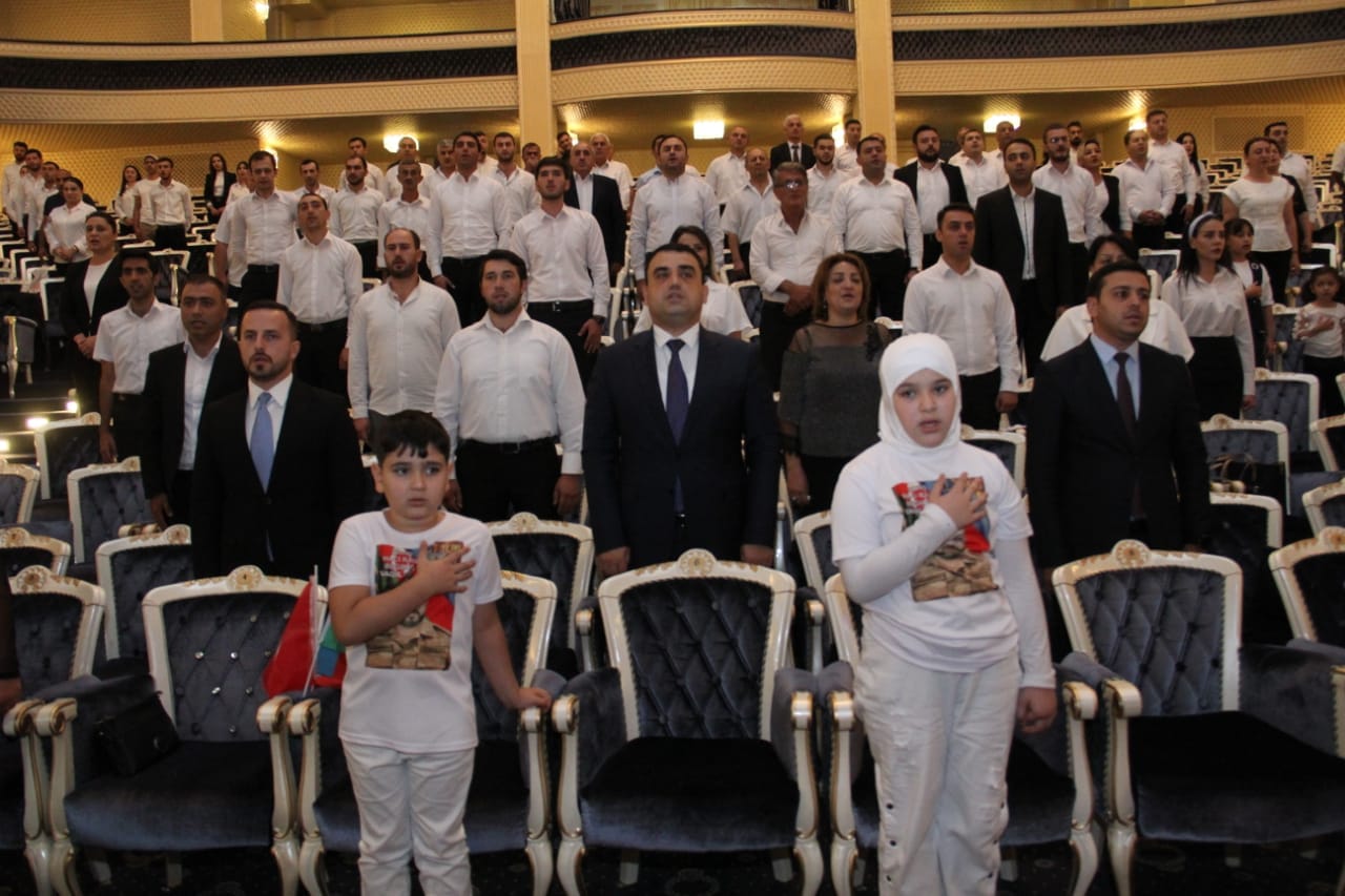 Gəncədə sözügedən tədbir F.Əmirov adına Gəncə Dövlət Filarmoniyasında reallaşıb. Əvvəlcə Azərbaycanın dövlət müstəqilliyi, suverenliyi və ərazi bütövlüyü uğrunda canından keçən şəhidlərimizin əziz xatirəsi bir dəqiqəlik sükutla yad edilib. Daha sonra Gəncə Dövlət Filarmoniyasının Kamera Orkestrinin müşaiyəti, şəhid valideynləri və övladlarının, qazilərin, Gəncə terrorundan zərər çəkmiş ailələrinin iştirakı ilə Azərbaycan Respublikasının Dövlət Himni səsləndirilib.