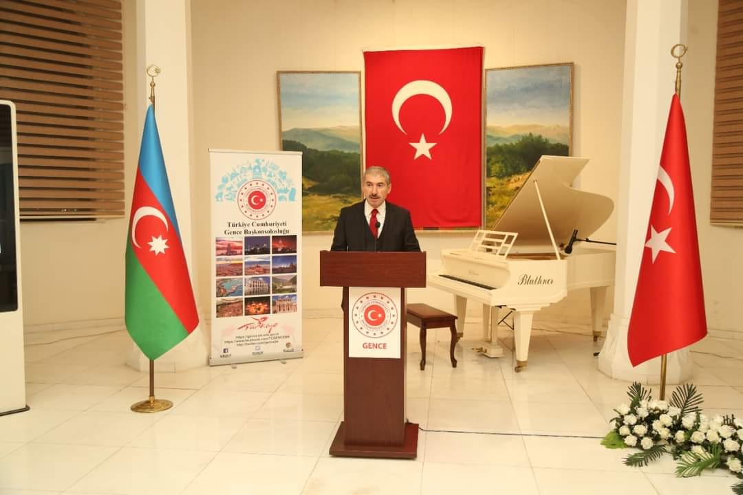 Türkiyənin Gəncədəki Baş Konsulu Zeki Öztürk və Gəncə Şəhər İcra Hakimiyyətinin başçısı Niyazi Bayramov Türkiyə Cümhuriyyətinin elan edilməsinin 99-cu ildönümü ilə əlaqədar çıxış etmişlər.