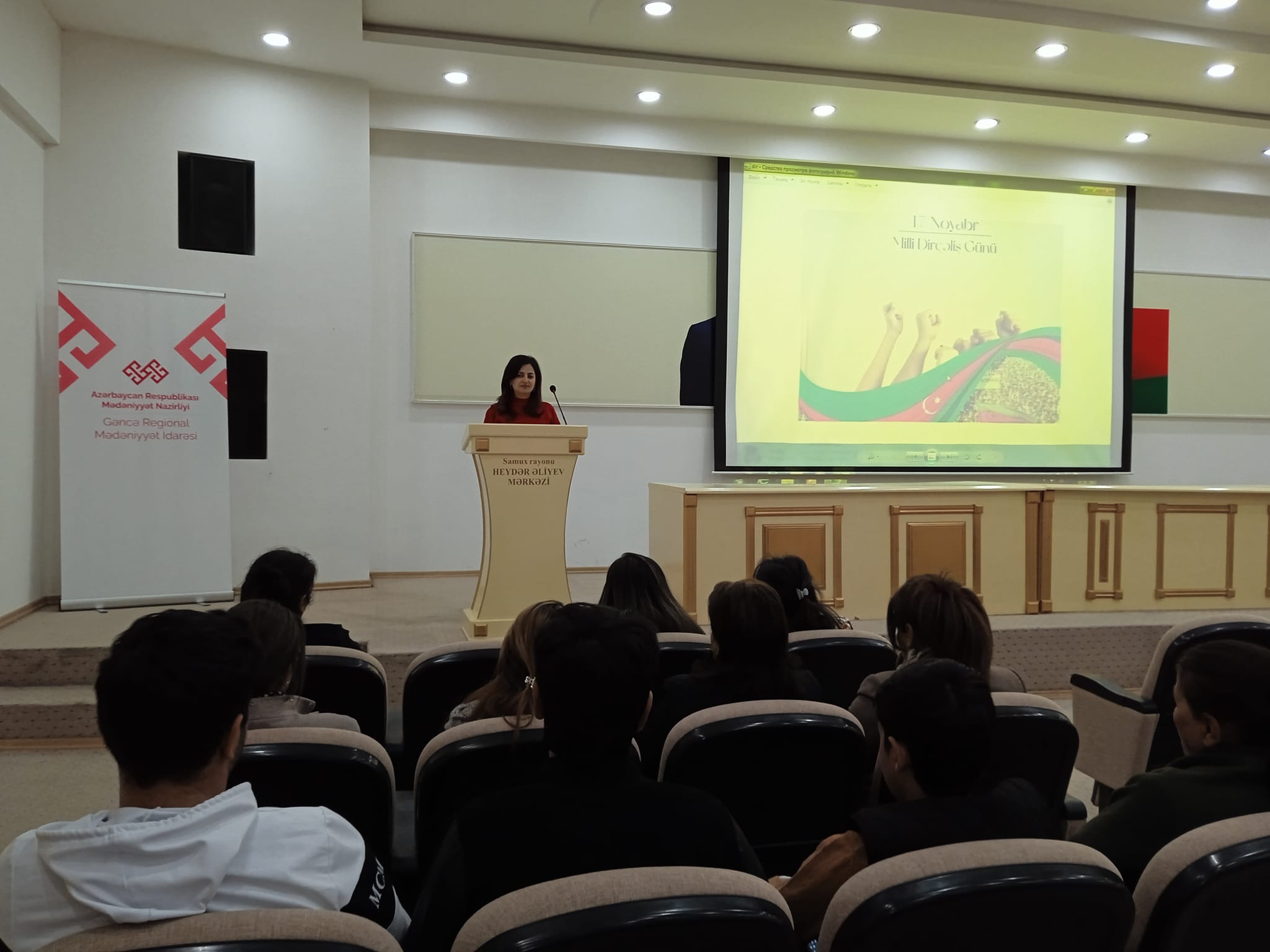 17.11.2022-ci ildə Gəncə Regional Mədəniyyət İdarəsi Samux rayon Heydər Əliyev Mərkəzində 17 noyabr Milli Dirçəliş günü ilə əlaqədar tədbir keçirildi. Tədbiri giriş sözü ilə açan Samux rayon Heydər Əliyev Mərkəzinin direktoru Nuranə Həsənova, elmi işçisi Aygül Cabbarova, əməkdaşı Gülay Namazova mövzu ətrafında tədbir iştirakçılarına geniş məlumat verdilər. Tədbirdə həmçinin Gənclərin İnkişaf və Karyera Mərkəzinin əməkdaşı Teymur Abdullayev, Samux MKS-in Ziyadlı kənd kitabxana filialının müdiri Laləzar Məmmədova mövzu ətrafında çıxışlarını davam etdirdilər. Tədbir iştirakçılarının sualları cavablandırıldı.