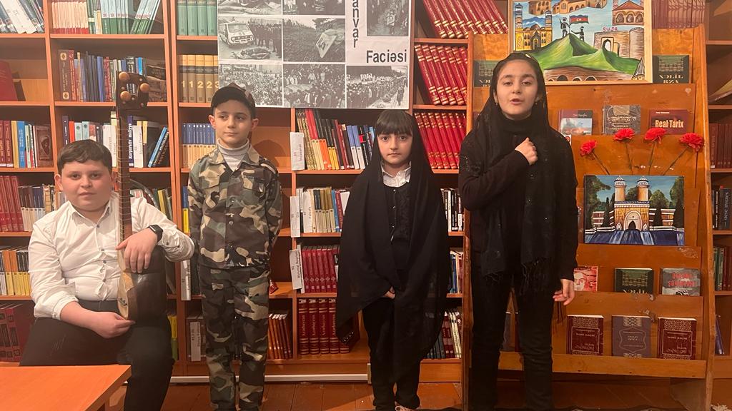 Gəncə Regional Mədəniyyət İdarəsi Gəncə şəhər Mərkəzləşdirilmiş Kitabxana sisteminin 9 saylı filialında 18.01.2023-cü il tarixində 20 Yanvar faciəsinin 33-cü il dönümünə həsr olunmuş “Zamanın unutdurmadığı gün” başlıqlı ədəbi-bədii kompozisiya keçirildi. Tədbirdə Samux rayon Qarayeri qəsəbə 1 saylı məktəb liseyin, Gəncə şəhər 37 saylı orta məktəbin şagirdləri iştirak etdilər. İlk öncə 20 Yanvar şəhidlərinin əziz xatirəsi bir dəqiqəlik sükutla yad edildi. Filial müdiri Səkinə Hacıyeva tədbiri açıq elan etdikdən sonra 20 Yanvar hadisələrinin xalqımızın qan yaddaşı kimi gənc nəsillərə çatdırılmasının vacibliyindən bəhs etdi. Azərbaycan xalqı öz azadlığı və müstəqilliyi uğrunda çox sayda şəhid verdi amma xalqın iradəsi sınmadı, milli ruhu sarsılmadı. Samux rayon Qarayeri qəsəbə 1 saylı məktəb liseyin şagirdlərinin çıxışlarından ibarət ədəbi-bədii kompozisiya və tarın ifasında vətənpərvərlik ruhunda mahnıların ifası ilə davam edən tədbir, 20 Yanvar faciəsini əks etdirən fotoşəkillərin, Gəncə Gənclər Evi tələbəsi Abdusəlimova Fatimə tərəfindən çəkilən rəsm işlərinin, şənbə gecəsinin realllıqlarını şeirlərində və publisistik əsərlərində öz əksini tapan söz və qələm sahiblərinin kitablarından ibarət sərginin nümayiş olunması ilə sonlandırıldı. Ümumilli mənafelərin müdafiəsi naminə canlarından keçən, şəhidlik zirvəsinə ucalan Vətən övladlarının misilsiz fədakarlıqları heç zaman unudulmayacaq. Allah bütün şəhidlərə rəhmət eləsin.
